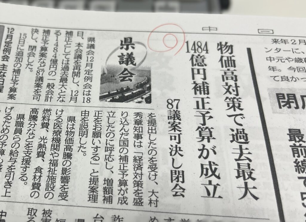 物価高が続く中にあって、国からの「緊急経済対策」を受けての補正予算。過去最大ではあるが決して必要充分な支援額ではないことは確か。